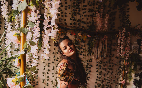 My boudoir work is warm and artsy with strong coloring that is vibe-inspired. I believe that different sets have different feelings and that the lighting, styling, and coloring should reflect the feelings that set evokes. If you have a certain look you're looking for, let me know before booking and I'll do my best to collaborate! I love variety- both dark and moody, bright and airy, and creative coloring. It's all about what the mood is baby!